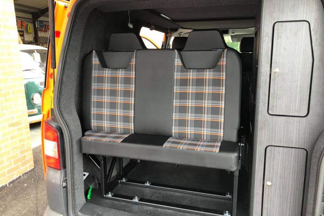 We are able to add upholstery to pretty much any style you like, or we very often match the existing front seats. This is usually in vinyl, however can be made in leather if you prefer. For any questions, please contact Rusty on 07812007734, he will be more than happy to help